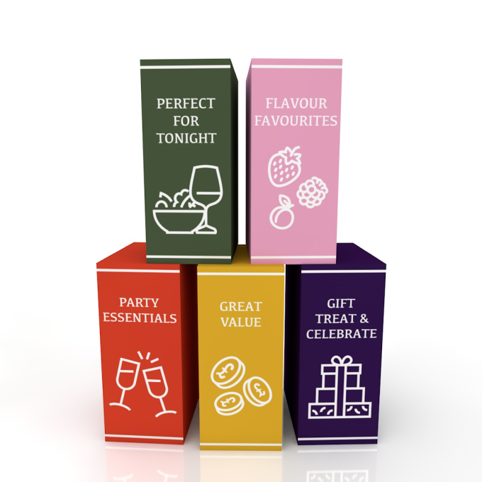 Covering the following occasion messages; Gift, Treat & Celebrate, Party Essentials, Perfect for Tonight, Great Value & Flavour Favourites